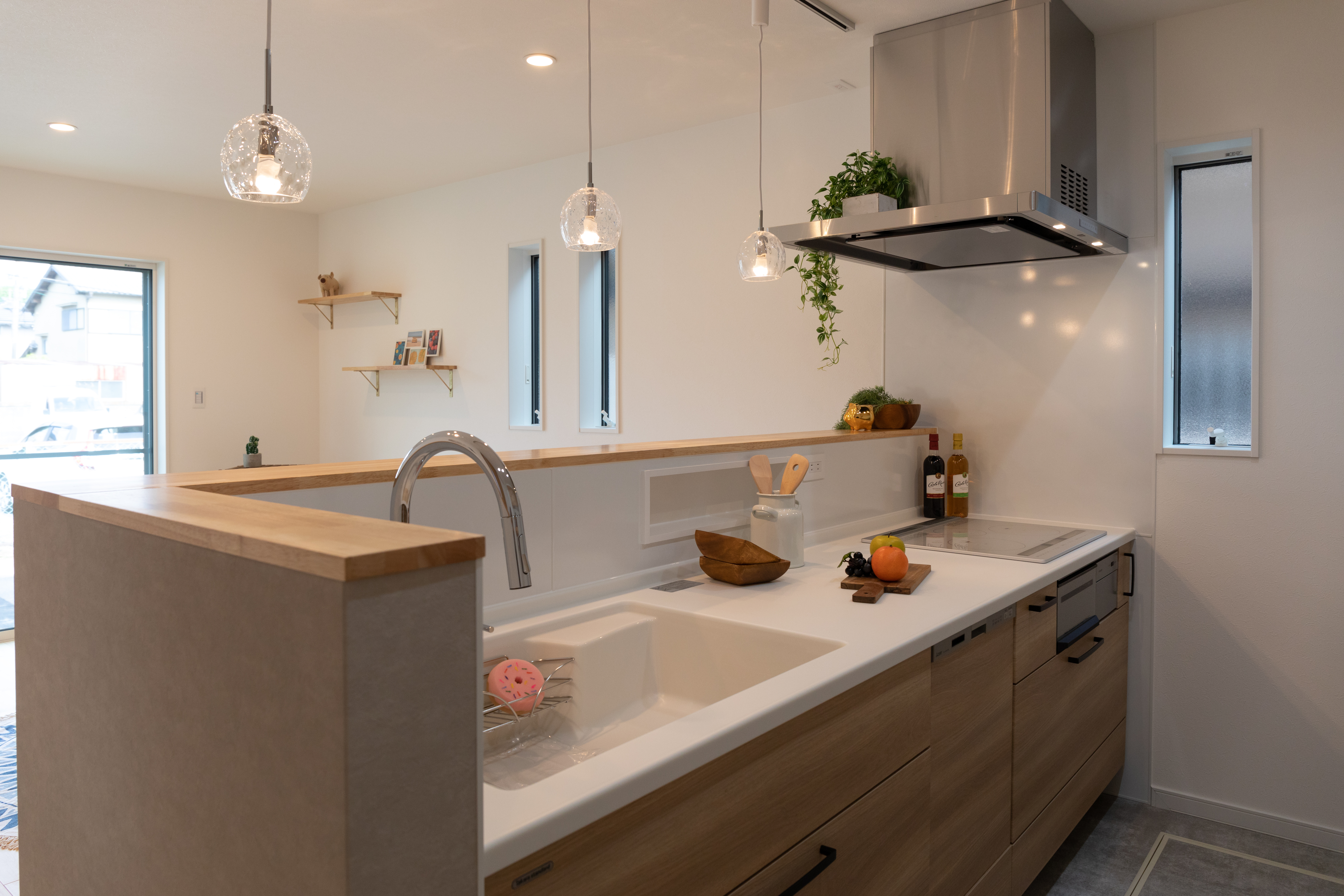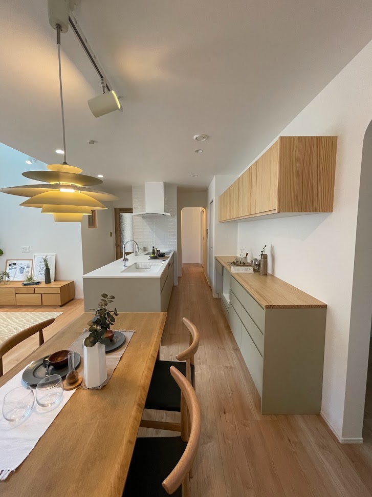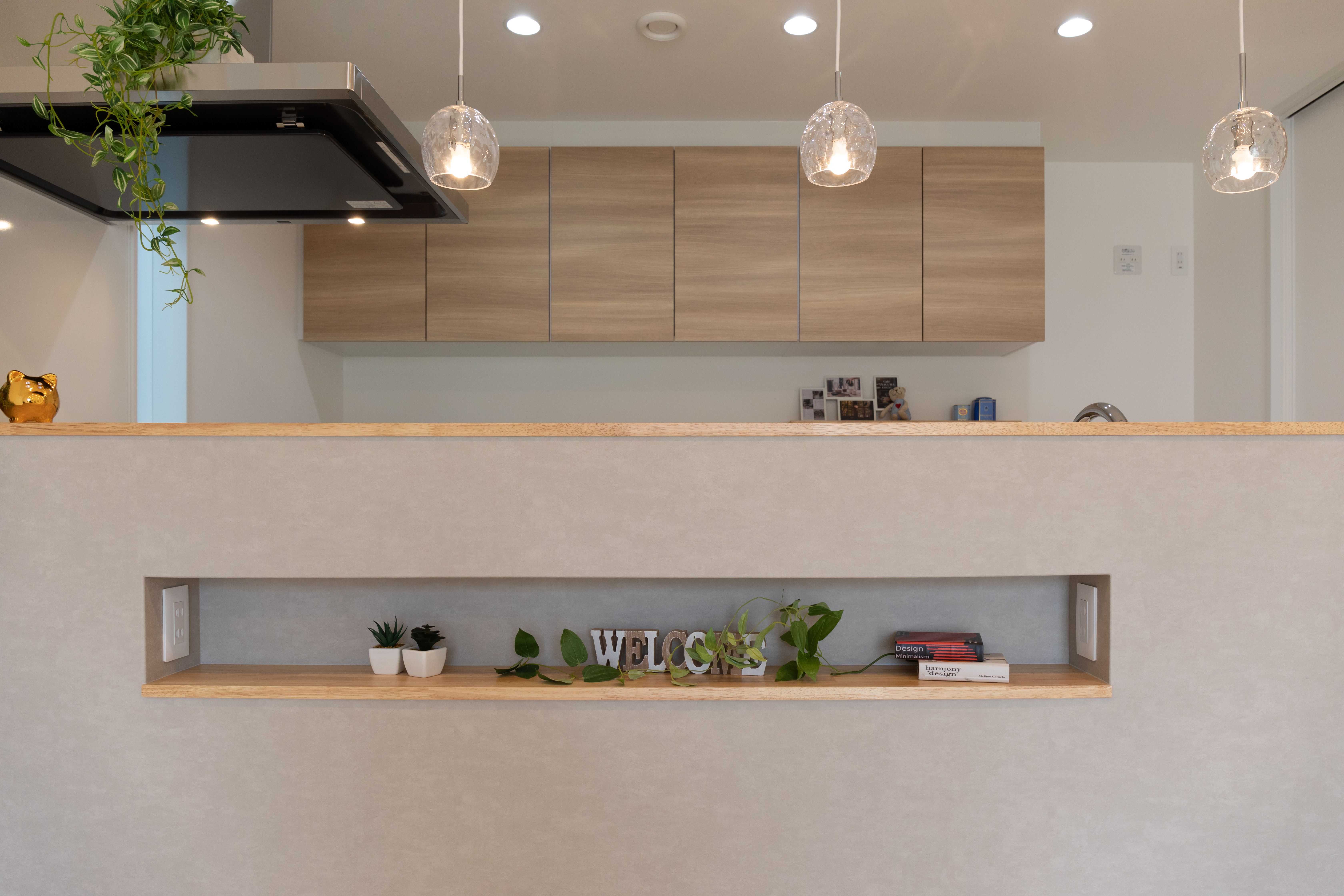 ダイニング側から見るとこのようにニッチがあります。キッチンの背面は大工さんが施工する造作壁